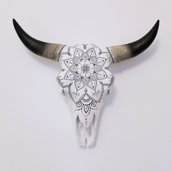 Beautiful Hand Painted Faux Cow Skull With Black Mandala 3 Etsy Norway